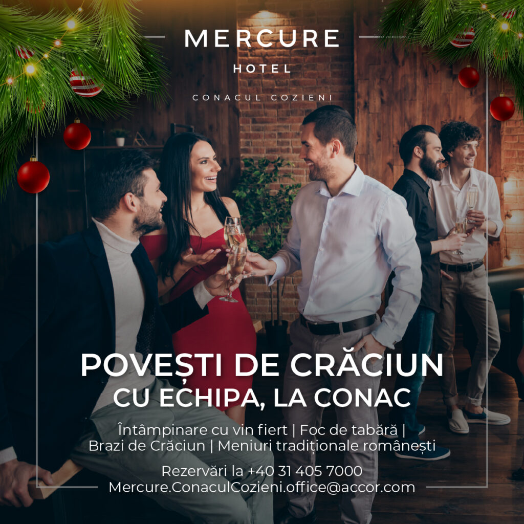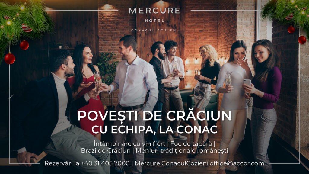 La Mercure Conacul Cozieni, sărbătorile de iarnă poartă farmecul unei povești urbane cu parfum aristocratic. Arhitectura conacului, lumina caldă a decorațiunilor, aroma vinului fiert și clinchetul colindelor creează decorul perfect pentru o petrecere memorabilă alături de echipă.